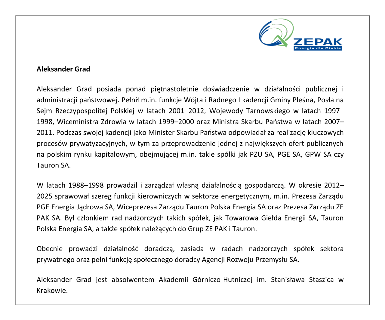 Strona główna O firmie Władze spółki Rada Nadzorcza Opis Aleksander Grad