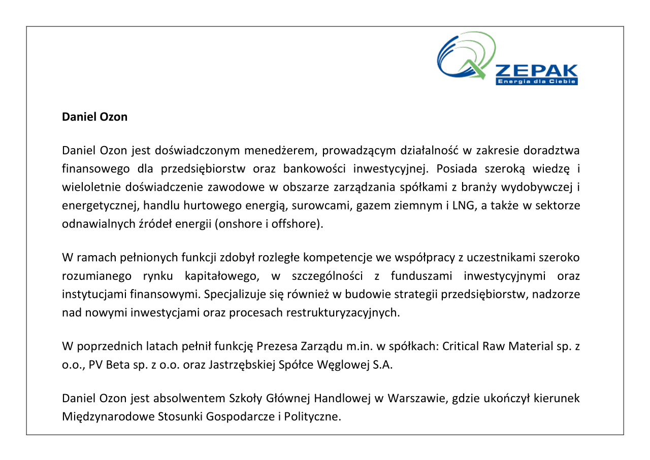 Strona główna O firmie Władze spółki Rada Nadzorcza Opis Daniel Ozon