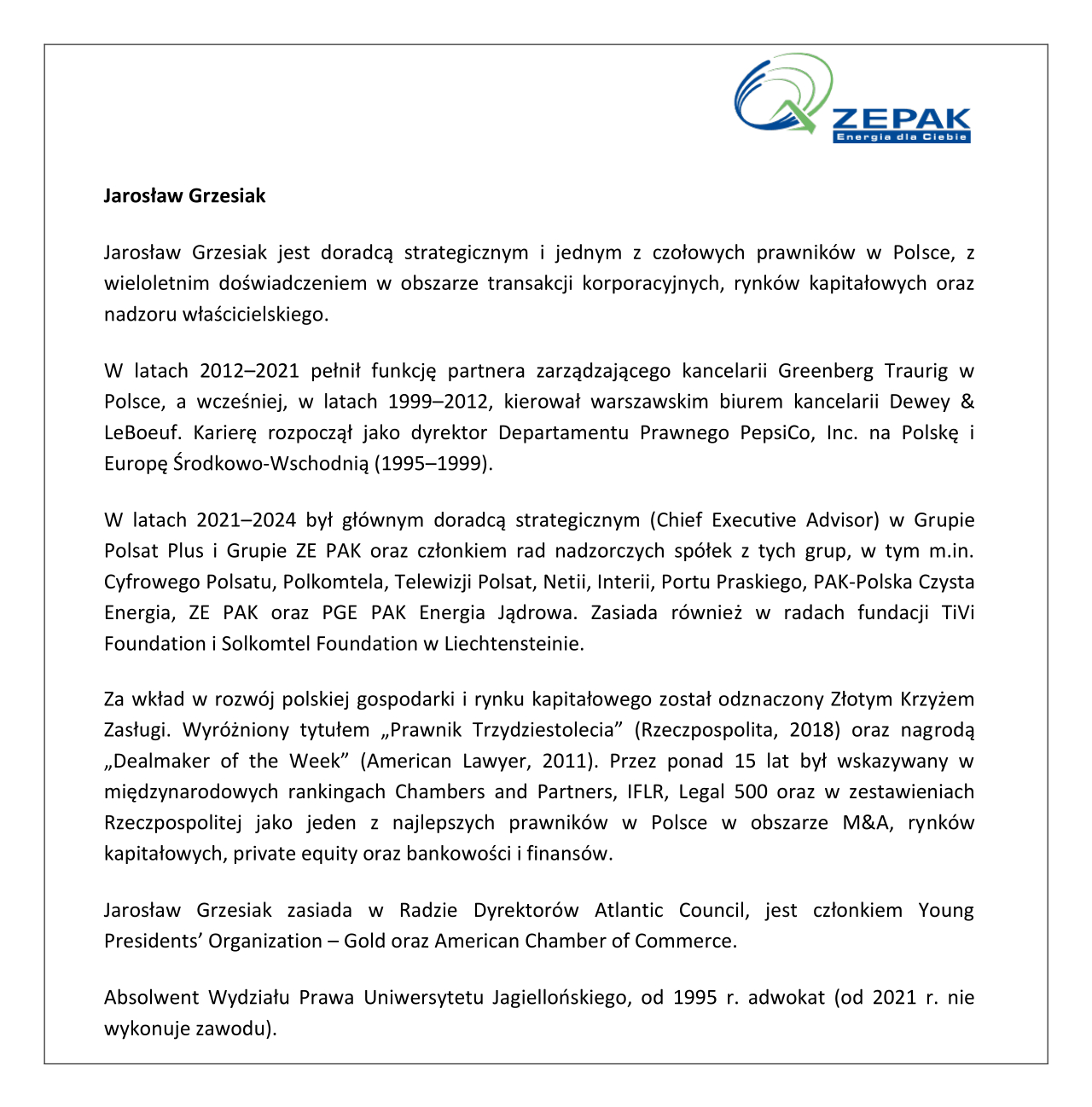 Strona główna O firmie Władze spółki Rada Nadzorcza Opis Jarosław Grzesiak